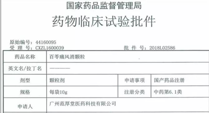 2018Äê7Ô£¬Ð§ÀͿͻ§¹ãÖÝ·¶ºñÌÃÒ½Ò©¿Æ¼¼ÓÐÏÞ¹«Ë¾É걨µÄÖÐÒ©6.1ÀàÐÂÒ©¡°°ÙÜßÍ´·çÏû¿ÅÁ£¡±»ñµÃCFDA½ÒÏþµÄÒ©ÎïÁÙ´²ÊÔÑéÅú¼þ£»